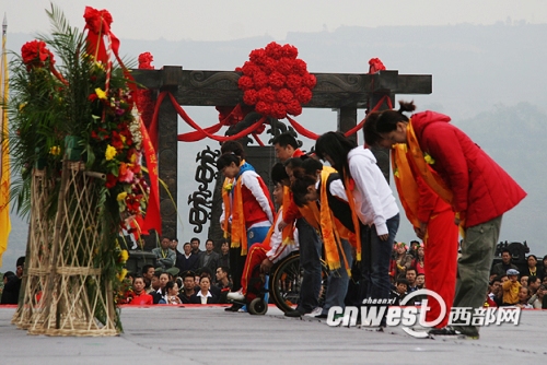 10月7日,以“同享奧運 共祭始祖”為主題的戊子(2008)年重陽節恭祭軒轅黃帝典禮在陜西黃陵縣隆重舉行。我國11名歷屆奧運冠軍參加了恭祭典禮。