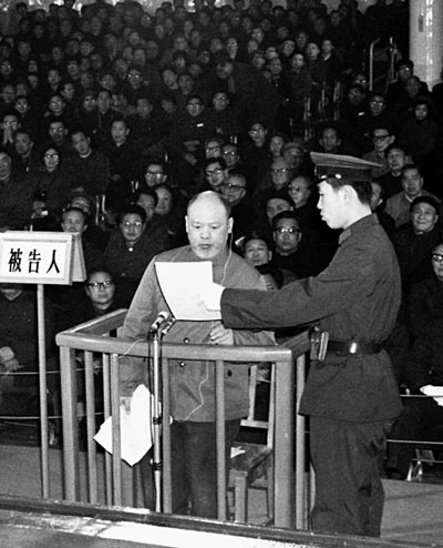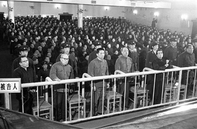 1980年11月20日下午3 時整,北京正義路,審判林彪、江青反革命集團案特別法庭庭長江華宣布開庭。10名主犯受審。