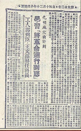 4.1949年1月12日《人民日報》第3版刊登的報道:光明廠定出計劃,學習《將革命進行到底》