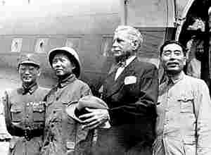 1945年8月28日,毛澤東赴重慶談判。臨行前,他換了換裝,穿上了葉劍英特地給他買的皮鞋和在北京給他訂做的一套藍灰色中山裝。江青到蘇聯醫生阿拉夫那里為毛澤東借來了一頂禮帽。周恩來上上下下打量毛澤東這身裝束,毛澤東說:“怎么,嫌我穿得太洋氣?”周恩來說:“不,我是看主席戴的帽子好像有點小。”說著,摘下自己頭頂上的盔式太陽帽遞給毛澤東:“主席,你戴上這頂試試,重慶的日光是很強烈的。”毛澤東接過太陽帽戴上,不大不小正合適。周圍的同志也說好。毛澤東風趣地說:“恩來,我可奪人所好啰!”并問周恩來:“你戴什么呢?”周恩來說:“我還有,再說,重慶我比你熟,總可以搞到一頂,這頂就送給你吧。”于是,毛澤東就戴上這頂盔式太陽帽登上飛機,去了重慶,并在重慶機場留下了一張頭戴盔式禮帽的歷史照片。