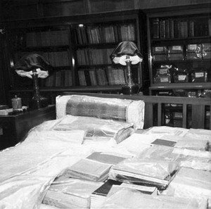在東廂房的五間中,中間的一間是過廳,靠北側的兩間是通著的,這就是毛澤東的辦公室,與過廳相通。靠南側的兩間不與過廳相通,也不在菊香書屋院內開門,而是開在東廂房東面的夾道內。這里是貯藏室,若去這貯藏室,需要走出菊香書屋這所院子。