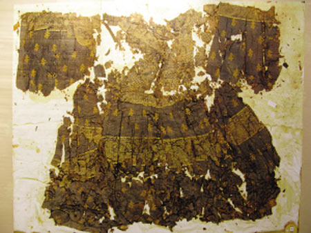 2006年1月,定陵博物館委托國(guó)家首批“一級(jí)可移動(dòng)文物修復(fù)資質(zhì)單位”和“甲級(jí)可移動(dòng)文物技術(shù)保護(hù)設(shè)計(jì)單位”的南京云錦研究所,對(duì)這件萬(wàn)歷龍袍進(jìn)行復(fù)制。該所專家同年赴定陵進(jìn)行復(fù)制前的考察,在嚴(yán)密的文物庫(kù)房里,看見當(dāng)年出土的這件龍袍,平放在一層層的柜子里,由于庫(kù)房需要防腐、防霉、防潮等原因,里面放了各種藥劑,氣味嗆人,幾位專家只得輪流進(jìn)去。他們看到,這件龍袍早已褪色,腐朽不堪,局部已成碎片。他們只好根據(jù)當(dāng)年的發(fā)掘報(bào)告進(jìn)行研究。專家們查找了大量古籍文獻(xiàn)資料并研讀考古報(bào)告,經(jīng)過(guò)多次論證,最后終于拿出了復(fù)制方案。