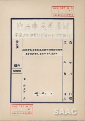 7.1949年1月—3月,天津市軍管會接管部工業(yè)處接管中國紡織建設(shè)股份有限公司天津第四、五紡織廠移交人員清冊,圖為清冊卷皮