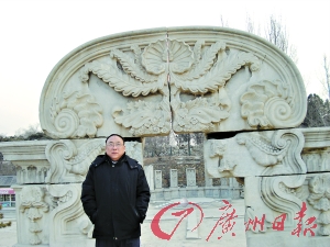 追索行動的發起人——北京律師劉洋站在圓明園的斷壁殘垣前。