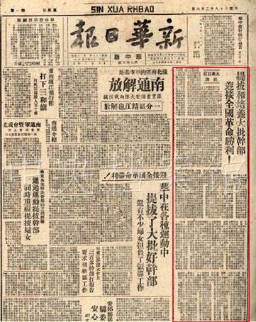 1.1949年2月6日,《新華日報》轉載的社論:《提拔和培養大批干部迎接全國革命勝利》