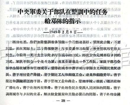 2. 1949年2月8日,中央軍委關于部隊在整訓中的任務給鄧(小平)、陳(毅)等的指示