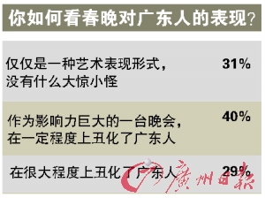在“你認為央視春晚貶低了廣東人形象嗎?”的調查中,投票者中超過五成認為:“是。”