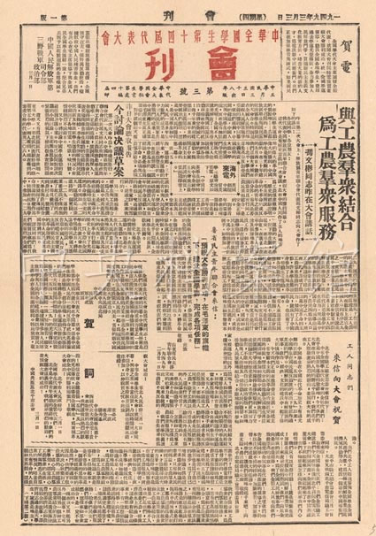 4. 1949年3月3日,中華全國學(xué)生第十四屆代表大會會刊