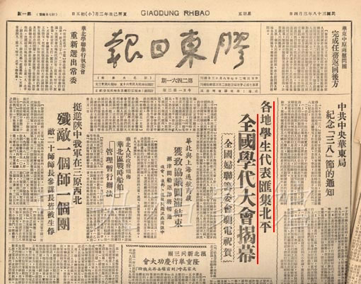 6. 1949年3月4日,《膠東日報》關(guān)于全國學(xué)代大會的報道
