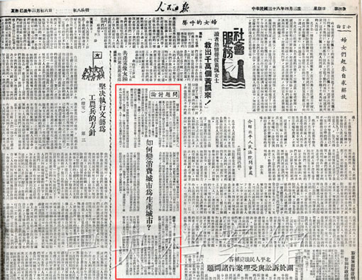 4. 1949年4月3日《人民日報》發表的問題討論:如何變消費城市為生產城市