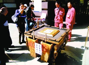 昨天中午,記者看到一只編號為0350的奧運缶擺在該小區門前,其四周用鎖鏈與地面連接,缶上貼著“貴重物品,請勿觸摸”的紙條。旁邊坐著兩名自稱是中國金銀幣禮品網員工的女孩。據她們介紹,所賣的缶都是奧運會開幕式上用過的,完好無損,均由單位以每個10萬元左右的價格從官方拍得,除部分擺在分公司展示外,剩下六七只準備售賣,現在明碼標價賣12.8萬。“每只缶都有收藏證書和電子身份證書,可以上網核查真偽。擺在這里的是供展示,如果市民有興趣,可以留下手機號。”賣缶人員說。