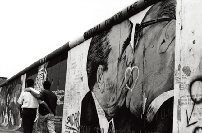 1961 年柏林墻建起后,上面逐漸出現了大量涂鴉作品。由俄羅斯藝術家德米特里·弗魯貝爾(DmitriVrubel)創作于20 年前的《兄弟之吻》,可算是其中最著名的。《兄弟之吻》描繪的是前民主德國領導人埃里希·昂納克(Erich Honecker)和前蘇聯領導人勃列日涅夫(Leonid Brezhnev)嘴唇對嘴唇的親吻,帶有很強的諷刺意味。多年來,這幅涂鴉已經成為柏林著名的旅游景點。弗魯貝爾在得知成名作將消失后,感到很遺憾,不過他從畫作的歸屬方East Side 畫廊獲得了3000 歐元的補償,而且還被邀請將來重新繪制一幅《兄弟之吻》,“當然不再是從政治的角度,而是與愛有關”。