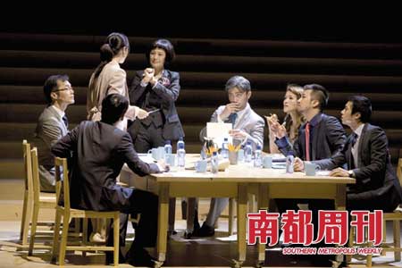 林奕華:5·12地震后,我跟張艾嘉聊天,提到我在內(nèi)地巡演時(shí),看到許多二線城市都在“追”建筑、城市建設(shè)等,要把它弄得更像一個(gè)一線城市。大家都覺得城市好,因?yàn)榭梢赃_(dá)成許多事情。我們想要達(dá)成什么?那就是我們的欲望。當(dāng)欲望不容易實(shí)現(xiàn)時(shí),就產(chǎn)生焦慮和不安全感。地震來了后,大家開始反省城市是否應(yīng)走得那么快。這是個(gè)很城市化的問題,而城市里上班族最多。其實(shí),上班族在這部戲里也是一種比喻,不完全是針對(duì)上班族這群人,而是指現(xiàn)代人,探討城市人為什么會(huì)生活得不快樂。