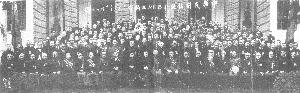 王貴遜帶著徒弟趕了過去。相機(jī)在第一會(huì)議廳的門前架好后,委員們都過來站好,左等右等卻不見蔣介石。原來,在二樓的蔣介石俯瞰樓下,見委員、警衛(wèi)、記者一堆人,秩序很亂,就借口身體不舒服,不參加合影了。于是,“二號(hào)人物”汪精衛(wèi)站在了正中的位置。