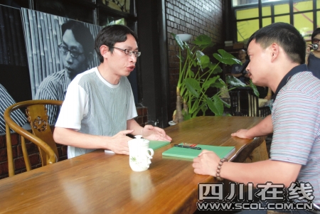 一把太師椅、一張?zhí)茨咀馈⒁槐w碗茶,“廢話”開起了山寨“百家講壇”。這件名為《談?wù)劷逃返淖髌酚靡环N溫和的姿態(tài)引發(fā)了不少觀眾的議論,因為該行為藝術(shù)的作者就是飽受爭議的中學(xué)教師范跑跑。自從他受邀參加8月15日的北京798雙年展之后,范跑跑近日頻頻和藝術(shù)家“裹在一起”。當(dāng)天的《談?wù)劷逃房芍^他進軍藝術(shù)界的“處女作”,說起這次自己參展的愿意,范跑跑有些不好意思,他說:“這次展覽的學(xué)術(shù)主持陳默老師非要讓我拿件作品出來,我就想到用這種方式,也算是我8月在北京展覽的一次預(yù)演吧。”當(dāng)天,范跑跑就用這種方式同不少觀眾坐而論道,探討中國的教育問題,市民白先生陪自己的朋友來看展覽,無意中發(fā)現(xiàn)范跑跑搖身一變成了藝術(shù)家,大感驚奇之余,以兩個孩子父親的身份和范跑跑擺了半天育兒之道。聊完他對記者說:“范跑跑的某些觀點其實還是比較對的,比如他認為現(xiàn)在中國教育理論和實踐嚴重脫節(jié),不過這也是老生常談,而且我的確不知道他的這件行為作品算不算是藝術(shù)。” 記者 楊帆 攝影 劉亮