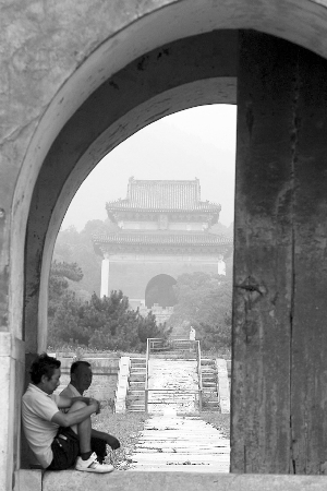 老齊告訴記者,永陵里面有紅外監(jiān)控鏡頭,整個陵墓內(nèi)布滿了這樣的監(jiān)控儀器,20來步就有一個,從寶頂一直到大門外。里面還有特殊的監(jiān)制器,如果有盜墓賊想在永陵打主意,只要動鐵鍬,監(jiān)制器就會有波動。夜里睡覺也不用擔心,他床頭邊上就是報警器。老齊很自豪地說,20多年過去了,報警器都還從來沒響過。獲得“特許”后,記者在大門口朝永陵內(nèi)遙遙看了幾眼,和長陵不同的是,永陵顯得滄桑而神秘,就連神道上也冒出了小松樹,在紅黃相間的高大建筑后面,能看到高高隆起的山,“那下面就是地宮。”由于是陰天,看上去,整個山包朦朦朧朧,似乎隱藏著無限的謎團。
