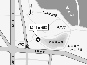 出了玄武湖公園,在解放門右側有一條小路,曲徑通幽一直向西延伸。順著山勢下行,過了雞鳴寺的后門不遠處,路的右旁冒出一方石碑,上面刻著“民間石器園”五個字。推開銹跡斑斑的鐵門,最先映入眼中的,就是兩口古老的石井。