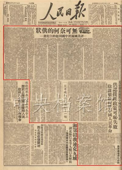 1949年8月5日,美國國務(wù)院發(fā)表了《美國同中國的關(guān)系》白皮書。毛澤東對此十分重視,認(rèn)為是用來教育中國人民的一次極好機(jī)會。8月12日至9月16日,毛澤東先后為新華社撰寫了六篇社論,包括《無可奈何的供狀——評美國關(guān)于中國問題的白皮書》、《丟掉幻想,準(zhǔn)備斗爭》、《別了,司徒雷登》、《四評白皮書——為什么要討論白皮書》、《五評白皮書——“友誼”還是侵略》、《六評白皮書——唯心歷史觀的破產(chǎn)》。這些社論揭露了美國對華政策的帝國主義本質(zhì),指出白皮書“是一部顛倒黑白的‘杰作’”,“是美帝國主義反動政策在中國慘敗的史冊”,批評了國內(nèi)一部分資產(chǎn)階級知識分子對美帝國主義的幻想,號召他們“丟掉幻想,準(zhǔn)備斗爭”。社論還論證資產(chǎn)階級共和國方案在中國的破產(chǎn),對中國近代革命的發(fā)生和中國革命的勝利,作了理論上的說明。這些社論發(fā)表后,引起了全國各民主黨派、各人民團(tuán)體、各報社、各學(xué)校以及各界人士的關(guān)注和討論,掀起了譴責(zé)美國白皮書的熱潮。