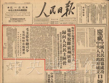 1948年8月,西北軍政長官公署副長官陶峙岳兼任新疆警備總司令,1949年1月,包爾漢擔任新疆省政府主席兼保安司令。1949年4月,與中國共產黨有聯系的國民黨和談代表屈武回新疆,策劃和平解放。中共中央派鄧力群到新疆進行爭取和平解放的工作。9月25日,陶峙岳向毛澤東、朱德、彭德懷及中國人民革命軍事委員會發出起義通電:自即日起,與廣州政府斷絕關系,竭誠接受毛澤東之八項和平聲明與國內和平協定,全軍駐守原防,維持地方秩序,聽候人民革命軍事委員會及人民解放軍總部之命令。26日,包爾漢也發出起義通電:將省政府改組成新疆省臨時人民政府,暫時維持全省政務,聽候中央人民政府的命令。9月底,起義部隊改編為中國人民解放軍第二十二兵團,新疆和平解放。