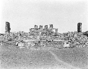 這批照片為美國攝影師甘博(Sidney D Gamble)于1918年左右拍攝,主要拍攝了圓明園東南角上的西洋樓景區,記錄了被拆卸盜賣中的圓明園,其中包括遠瀛觀、海晏堂、大水法、方外觀等景點。這些黑白照片中的很多石刻文物到現在已經不見蹤影。