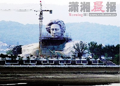 “哎,你們看,多英俊呀,多帥氣呀,青年時代的毛主席!”家住湖南第一師范附近的黃巖明先生,昨日打開窗戶便看見矗立在橘子洲頭的青年毛澤東藝術雕塑,他趕忙攜左鄰右舍到湘江風光帶來個先睹為快。而令他意想不到的是,盡管高高的塔吊還陪伴著藝術雕塑一動也不動,盡管藝術雕塑面部以下的腳手架還沒全部拆除,但橘子洲頭和湘江兩岸已經聚集著上萬名長沙市民駐足觀看了。