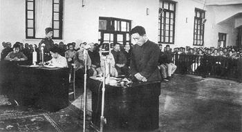 為了這次出庭,王克峰頭一次穿上整潔的灰色毛料中山裝、黑皮鞋,拎的是米黃色皮包,在法庭上接受公訴人、審判長、辯護人、被告人的質疑詢問,以鑒定證據(jù)支持公訴。整個過程,都用電影膠片給記錄了下來。被告人住岡義一當庭認罪,請求審判長“給我最嚴重處分”。