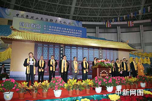 中新網舟山11月15日電(記者 江耘 袁爽 實習生 沈蘭)11月15日上午,第七屆中國普陀山南海觀音文化節在浙江舟山普陀山上開幕。本屆文化節吸引了來自日本、泰國、菲律賓、希臘等國家和地區的人士前來參加。