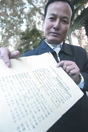 收藏這份手稿的藏家是浠水縣聞一多紅燭書畫院院長汪德富。昨日,汪德富向本報記者講述了手稿的來由和發現過程。