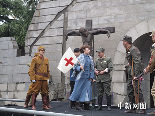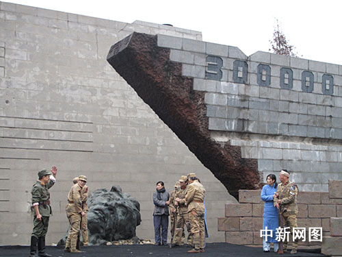 為紀(jì)念“南京大屠殺”事件爆發(fā)七十二周年,悼念南京三十萬(wàn)同胞遇難七十二周年,為了讓廣大人民群眾尤其是青少年勿忘國(guó)恥,珍惜和平,為反映發(fā)生在南京的重大歷史事件,今天中午,南京市話劇團(tuán)在江東門“南京大屠殺遇難同胞紀(jì)念館”現(xiàn)場(chǎng)演出舞臺(tái)劇《淪陷》。