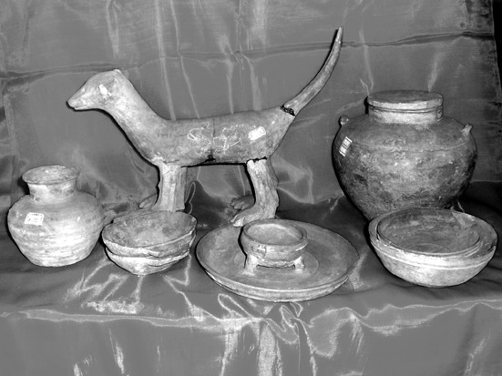 除去隨身配飾,墓室內出土的 132 件文物中,陪葬品多為陶器。包括灰陶制作的全套灶具,陶鴨、陶狗、陶鵝等。連玉璧、玉圭等傳統陪葬物品,也均由石璧、石圭代替,極為簡樸。