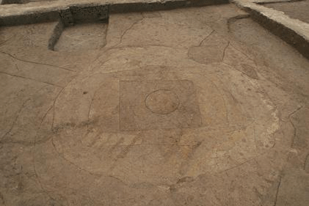 2、發現夯土祭壇,在山東地區尚屬首次發現,國內罕見。祭壇位于城內南部正中偏西部位,距南墻21.5米。南北殘長34.5米,東西殘寬19米,殘存高度0.7—0.8米。中心為直徑5.5—6米的圓臺形,向外依次為不同土色的方形、長方形及圓形、橢圓形相套的夯筑臺基。外圍有多層厚5—12厘米不等的水平狀夯土堆積,間有白色沙土或灰燼薄層。祭壇邊緣多被晚期遺跡破壞,中心部位到春秋戰國時期仍然保存完好,其南北干道也從祭壇西側繞行,這表明,在戰國時期人們對祭壇仍然保持著某種程度的崇拜。