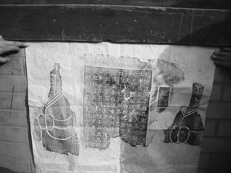 隨后,王福生與張運青一起回到時固村查看實物。這是個高四五十厘米的圓柱狀殘石柱,不但刻著字,還刻著人物畫像。