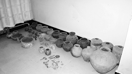 據4名犯罪嫌疑人交代,他們春節后一共盜掘墓葬4次。1月中旬的一個晚上,他們帶著鐵锨、䦆頭、手電筒、繩子和探桿,開著奧拓車來到楊橋畔鎮三隊圪梁漢墓群探墓。因當時選的盜墓地點土質堅硬,沒有挖掘到什么文物。3月17日,4人又來到漢墓群,在以前挖的一個盜洞周圍探到了墓穴,便開始輪流挖土,從漢墓里只挖出了一個小飾品。3月18日,4人再次來到漢墓群,2個人先用探桿探到墓穴,然后4人輪流開始往下挖土。不想恰逢記者驅車前來采訪,4人倉皇逃離。3月 20日,聽見沒有風聲,4人繼續從以前的盜洞往下挖,挖到墓底,在墓穴里找出了2個陶罐、1個帶花紋的陶鼎、1個陶盤和1個陶俑等文物。據悉,4名盜墓賊落網后,警方共查獲4嫌犯此前盜得的小銅件及陶罐等文物50余件。