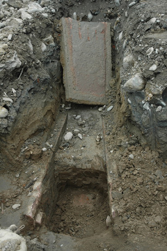 近日,四川省江油發電廠在維修老廠區染料車間道路時發現古墓,廠方立即停工保護現場并報告市文管所前來調查。該墓葬為唐代石槨墓葬。墓長2.45米,寬1.2米高0.9米,墓葬距地表1.1米。清理出土有開元通寶錢幣、鐵器殘件、瓷片、陶片殘件等文物標本。