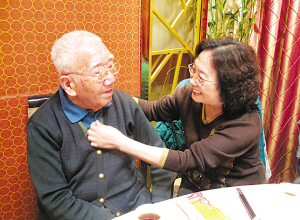 不過,莊夫人“揭發”道,莊奴也不只是寫情歌,他也有大氣的歌。一說起這,老先生又高興起來,他說,那是臺灣要拍一部電視專題片《詩詞的故鄉》,約他寫主題曲,他寫好了電視片沒拍成,詞卻留下來了,“一瀉千里的詩與詞,詩也美,詞也香……”老先生擊節吟誦著詞作,豪氣頓生。身邊有佳偶,老先生文思更如泉涌,幾乎是走一路,寫一路。他答應記者說,下次來南京,呆的時間長一點,他會專門給南京寫首詞。
