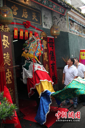 中新網(wǎng)深圳5月6日電(鄭小紅 李海友 鄧小偉)今年5月6日(農(nóng)歷三月廿三)是“中華海神”媽祖誕辰1050周年紀(jì)念日,在中英街,村民們以敲鑼打鼓、舞麒麟、貢祭品、招待八方來客免費(fèi)品嘗“九簋菜”等流傳已久的民俗方式予以紀(jì)念,中英街關(guān)口排滿了前來祈福的市民。