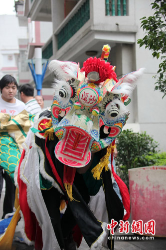 上午9點(diǎn)半,沙欄嚇村的吳氏宗祠前,吳姓老人們?cè)陟籼脙?nèi)向祖宗敬香。麒麟舞依然是主要的慶祝活動(dòng)。隨后,由兩頭矯健的麒麟帶隊(duì),40多位吳氏村民組成的麒麟隊(duì),連同他們吸引的大批村民和觀光客一同浩浩蕩蕩地繞村一周,為全村祈福迎祥。半個(gè)多小時(shí)后,游行隊(duì)伍在敲鑼打鼓和鞭炮齊鳴聲中抵達(dá)祭祀媽祖的天后宮。