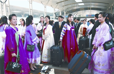 鮮艷的朝鮮族長裙,200多人的龐大團隊。昨日上午,即將在漢演出歌舞劇《紅樓夢》的朝鮮血海歌劇團抵達武昌火車站時,吸引了眾多旅客關注目光。雖然團隊并未接受媒體采訪,但記者仍多方打探出許多細節。