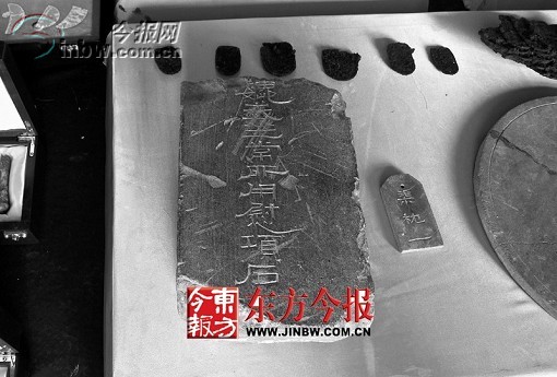 在已發(fā)現(xiàn)的曹操墓畫像石中,比較完整的都是從盜墓賊手中繳獲的。這些畫像石畫工精細(xì)嫻熟,有“神獸”、“七女復(fù)仇”等圖案,并刻有“主簿車”、“咸陽令”、“紀(jì)梁”、“侍郎”、“宋王車”、“文王十子”、“咬人”、“飲酒人”,等等,另外還有門簪、雕龍等殘塊。