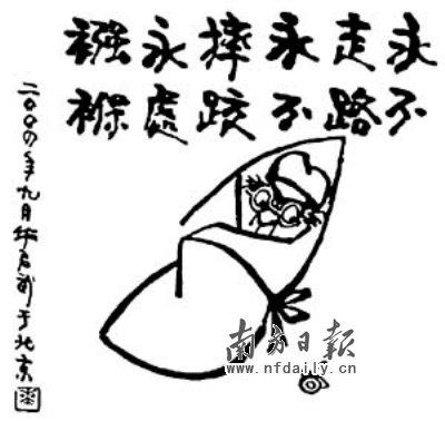 我在中央美院學(xué)習(xí)的時(shí)候,他在《人民日?qǐng)?bào)》做編輯,經(jīng)常會(huì)到中央美院。1960年,我在北京農(nóng)民運(yùn)動(dòng)講習(xí)所畫歷史畫的時(shí)候,他和美術(shù)界領(lǐng)導(dǎo)人王朝聞、蔡若虹等對(duì)我的創(chuàng)作都有關(guān)注。華君武老師為人正直,對(duì)年輕一代沒有架子,講話幽默風(fēng)趣,令人回味再三。他對(duì)年輕畫家愛護(hù)有加,就像朋友一樣沒有架子。我們?cè)谏鲜兰o(jì)80年代曾經(jīng)一起在深圳開會(huì),當(dāng)時(shí)我畫了他的肖像畫,他的題跋非常有趣。