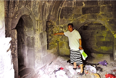 遺址內一處標有文物保護單位的“晏公祠”也遭人破壞,里面的石刻被鑿壞,洞穴內還遺留著廢舊衣物、報紙、食品袋等垃圾。遺址內的工人表示,他們是附近金山陵園的工人。但隨后趕到的金山陵園工作人員表示,此事與他們沒有任何關系,否認此事為他們所為。