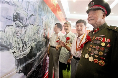 今年是抗美援朝戰爭60周年,6月28日至30日,“永遠崇敬最可愛的人”書畫展在北京舉行,在京的部分上將、中將、抗美援朝老戰士、北京時代金城書畫院的100名藝術家參觀了展覽。