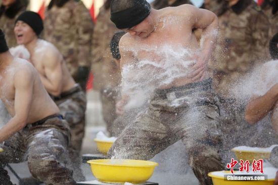 “黑河好八連”官兵零下31度赤膊浴雪挑戰極寒