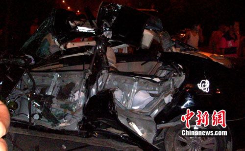 5日夜11時(shí)40分許,揚(yáng)州市東區(qū)解放北路文昌花園北大門發(fā)生一起惡性交通事故,一輛牌照為蘇KB9652本田轎車從解放北路由西向東行駛,由于車速過快為避讓與前方行駛的出租出追尾時(shí),肇事車駕駛員緊急剎車,在剎車時(shí)向右打了一把方向,轎車頭朝南車尾朝北向前滑出30多米后撞上停在路邊的大卡車尾部,停在路邊掛在檔上的大卡車被撞發(fā)動(dòng)起來,向前開動(dòng)了200米左右撞在一輛停放在路北側(cè)的一輛中型卡車停下。肇事轎車上四名年輕男子均受傷,其中兩人傷勢嚴(yán)重。