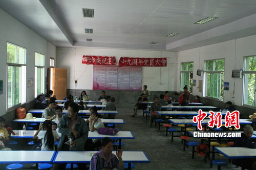 圖為21日陜西嵐皋縣四季鄉月壩村麥溪小學,臨時改成災民餐廳。 作 者:劉濤