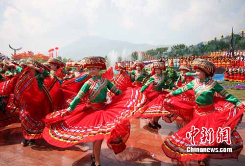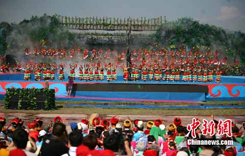 中新網西昌8月4日電(記者劉忠俊)4日上午,四川涼山州西昌市數千名群眾身著節日盛裝,跳起了獨具民族特色的歌舞,拉開了第六屆中國•涼山彝族國際火把節的序幕。