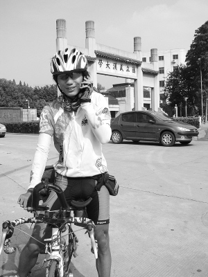 昨日下午3時30分,踏著自行車、身著騎行服的武大學生耿直終于抵達終點站——國立武漢大學的牌樓下。7月6日,耿直正是從這里出發(fā),歷時54天,穿行10省(市)完成了萬里行程。