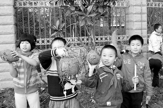 小學師生種出籃球大的番薯 每個學生發兩個(圖)