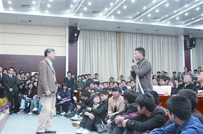 據了解,這場見面會并未對外界媒體公開,僅在校園BBS上發(fā)了個消息。晚7時30分,記者作為旁觀者坐到該校經濟學院報告廳內,無意窺見了一場有意思的學生們所稱的“培根叔見面會”。