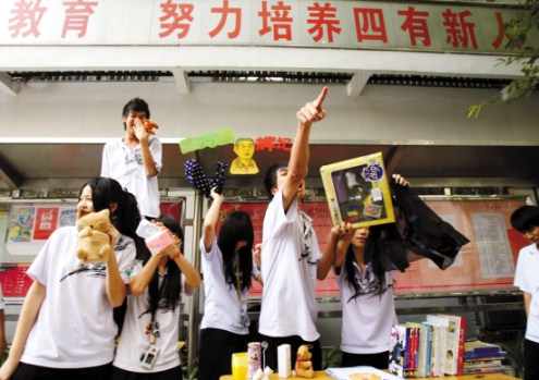 汶川大地震一周年之際,廣州市美術中學高一、高二級學生擺開“愛心集市”,記者到場一個小時,就有800件學生原創作品和工藝品成功交易并成為愛心捐款。集市除了批發時尚飾品、小用具、毛公仔外,學生原創作品也搬上義賣貨架。現場為“顧客”畫像、硬紙板折成細致繪圖的“首飾香盒”、自行設計編織中國結、炭筆素描和漫畫紙片,紛紛成了搶手貨。